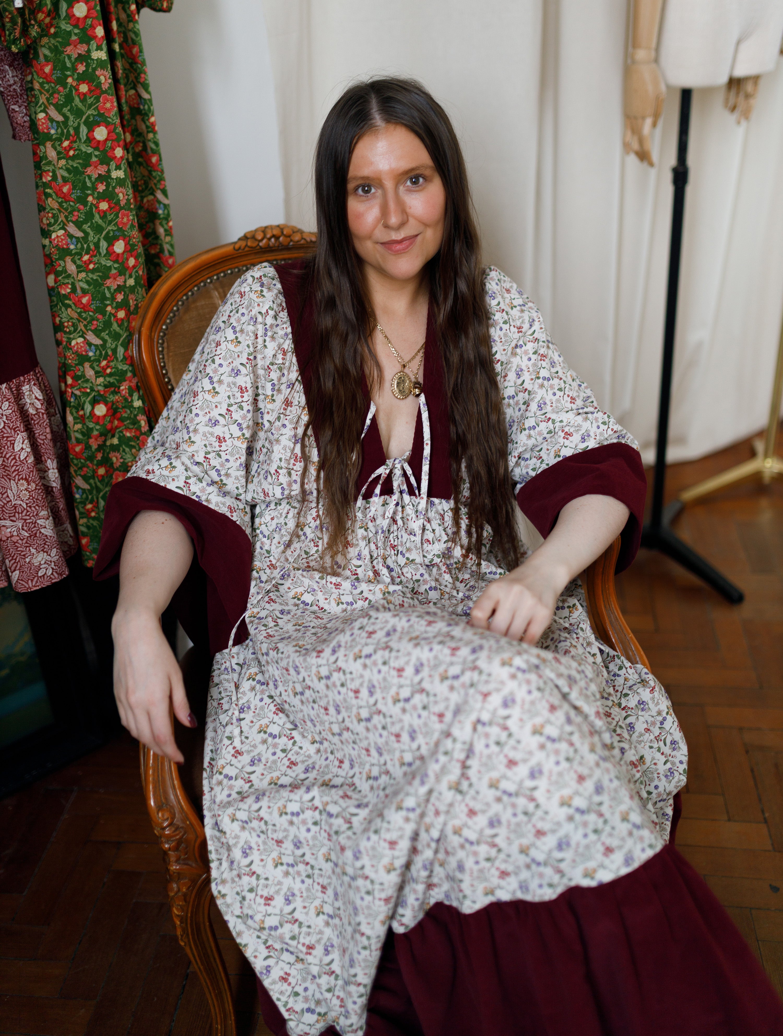 Stitched in a quiet studio by skilled artisans in England, each piece is a labour of love, crafted slowly, with purpose, in honour of tradition and the promise of forever. As if spun from the spindle of time itself, each thread recalls the olden days, the whispered lore of hearth and loom, where craft was kin to ritual, and every stitch was a love-binding spell.